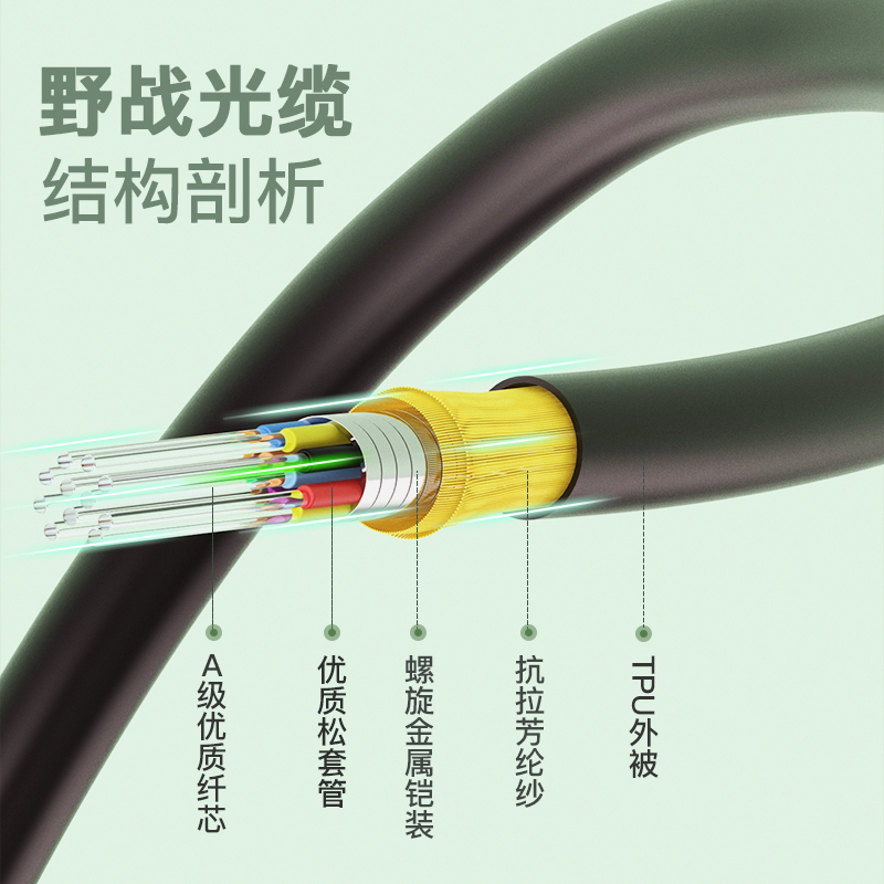 中科光電 單模八芯室外TPU野戰(zhàn)光纜 鎧裝防水基站通信野外拉練搶修  500米+放纜車+FC接口