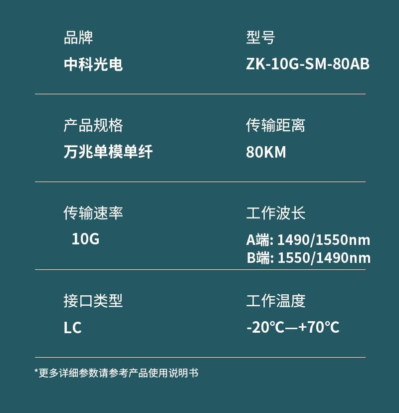 中科光電 萬兆光模塊 10G光纖模塊萬兆單模光模塊SFP+單模單纖1490/1550nm,80KM,LC接口 一對 ZK-10G-SM-80AB