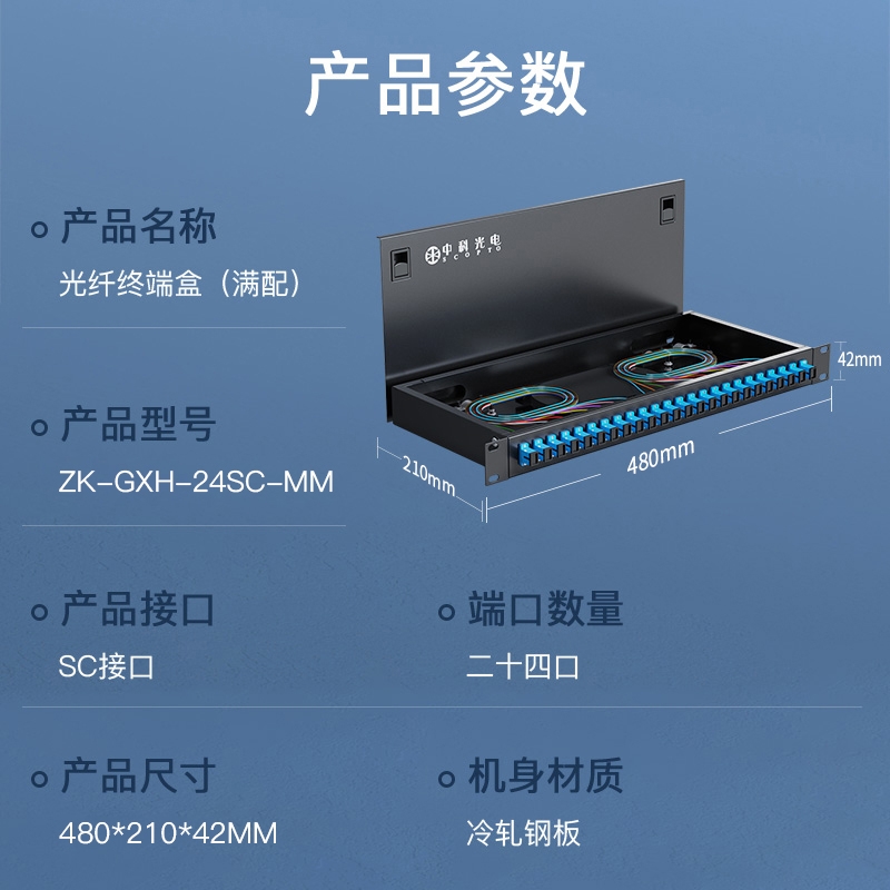 中科光電 光纖終端盒24口 24芯光纖配線架 光纜接續(xù)盒接線熔纖盒 SC多模滿配尾纖法蘭 機(jī)架式 ZK-GXH-24SC-MM