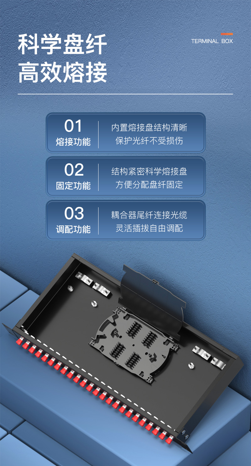 中科光電 光纖終端盒24口 24芯光纖配線架 光纜接續(xù)盒接線熔纖盒 FC單模滿配尾纖法蘭 機(jī)架式 ZK-GXH-24FC-SM