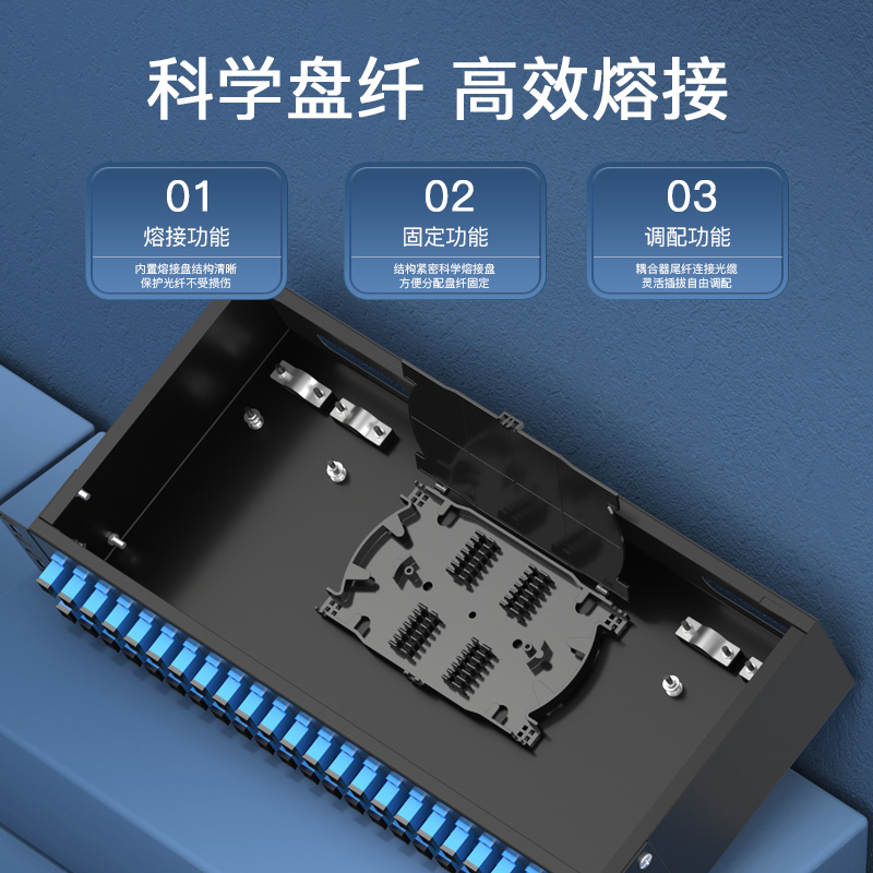 中科光電 光纖終端盒48口 48芯光纖配線架 光纜接續(xù)盒接線熔纖盒 SC單模滿配尾纖法蘭 機架式 ZK-GXH-48SC-SM