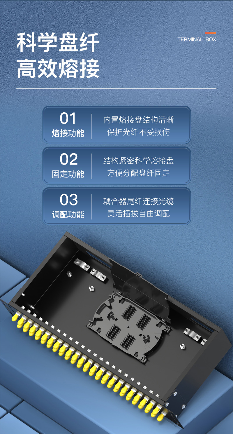 中科光電 光纖終端盒48口 48芯光纖配線架 光纜接續(xù)盒接線熔纖盒 ST單模滿配尾纖法蘭 機架式 ZK-GXH-48ST-SM
