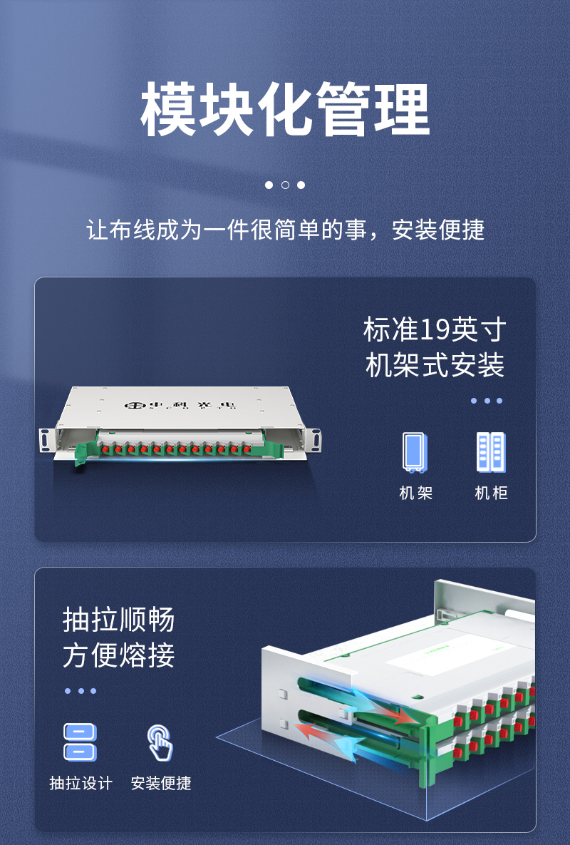 中科光電ZK-ODF-12FC-MM-OM4 12芯ODF光纖配線架FC萬兆多模滿配箱 機(jī)架式終端盒子框單元體光纜尾纖熔接盤