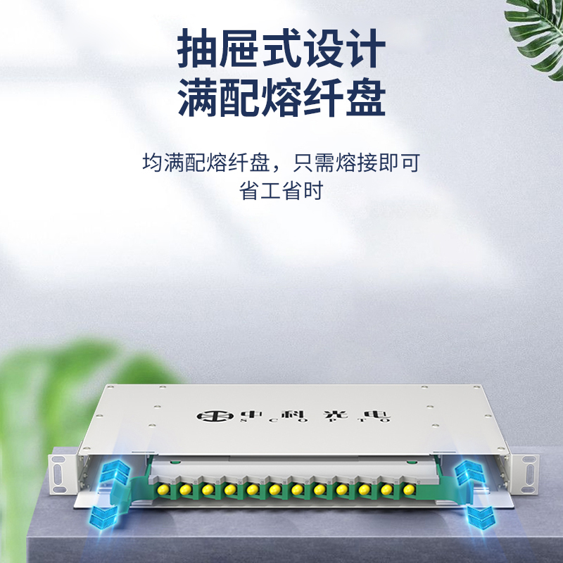 中科光電ZK-ODF-12ST-MM-OM3 12芯ODF光纖配線架ST萬兆多模滿配箱 機(jī)架式終端盒子框單元體光纜尾纖熔接盤
