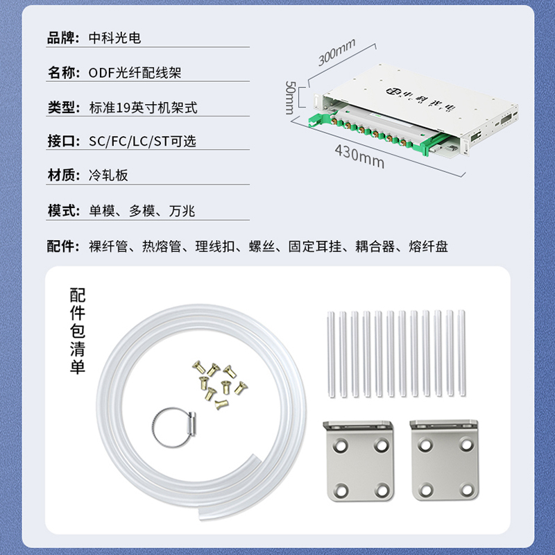 中科光電ZK-ODF-12LC-MM 12芯ODF光纖配線架LC多模滿配箱 19英寸機(jī)架式推拉終端盒子框單元體光纜尾纖熔接盤(pán)