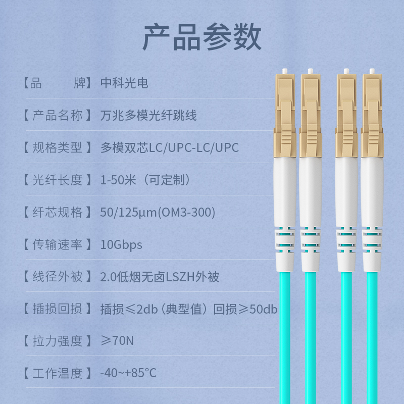 中科光電 萬兆多模光纖跳線LC-LC  OM3-300雙芯尾纖 低煙無鹵LSZH抗彎曲跳纖光纖線  長度可定制