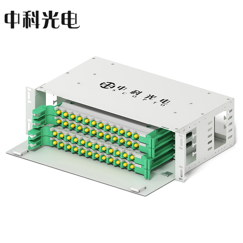 中科光電ZK-ODF-48ST-MM-OM4 48芯ODF光纖配線架ST萬兆多模滿配箱 機(jī)架式終端盒子框單元體光纜尾纖熔接盤