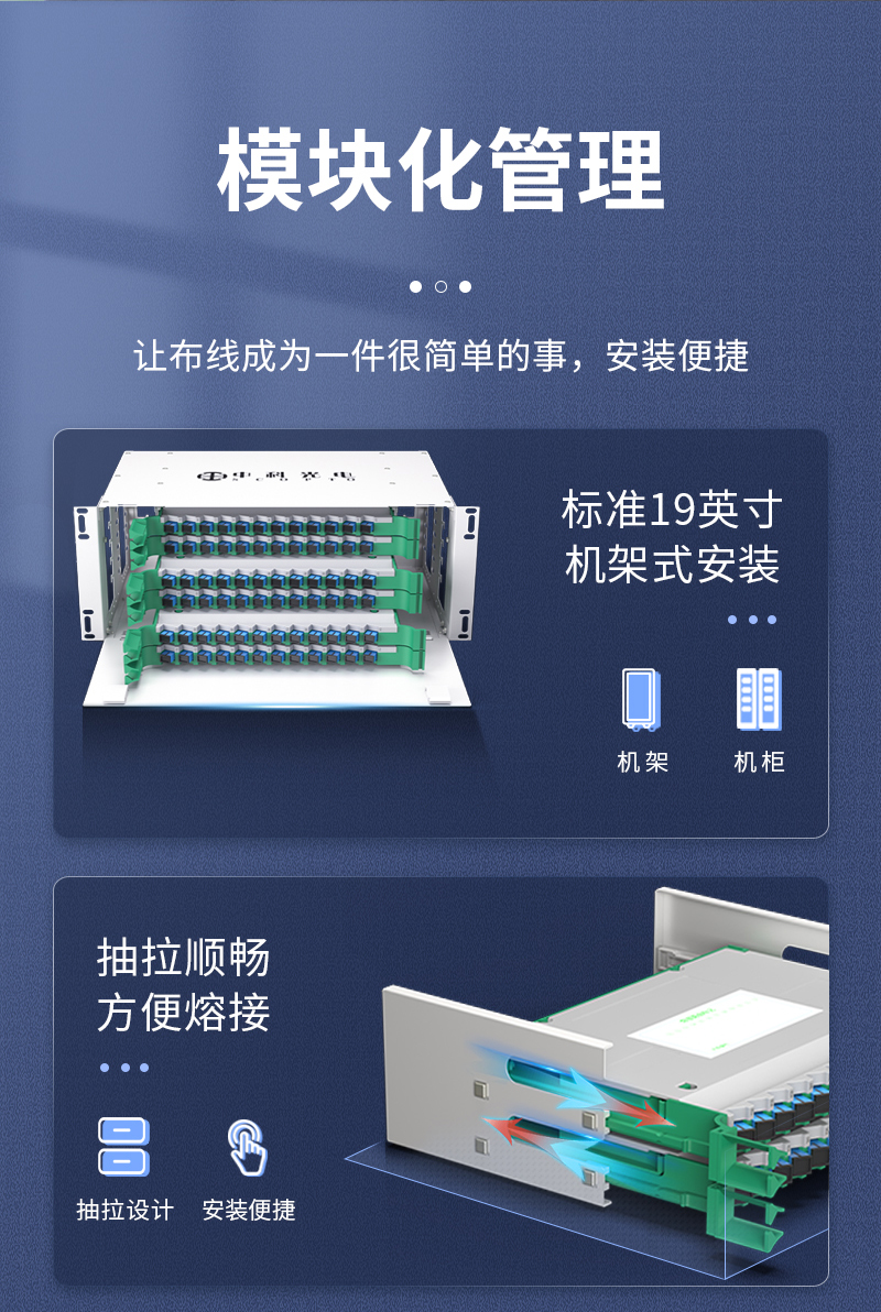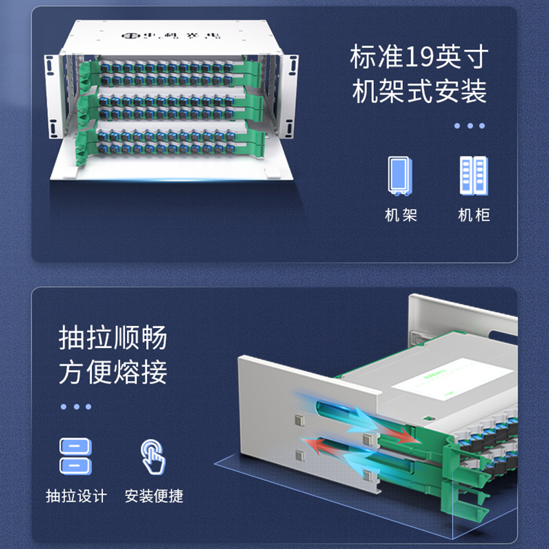 中科光電ZK-ODF-72SC-MM-OM3 72芯ODF光纖配線架SC萬兆多模滿配箱 機(jī)架式終端盒子框單元體光纜尾纖熔接盤