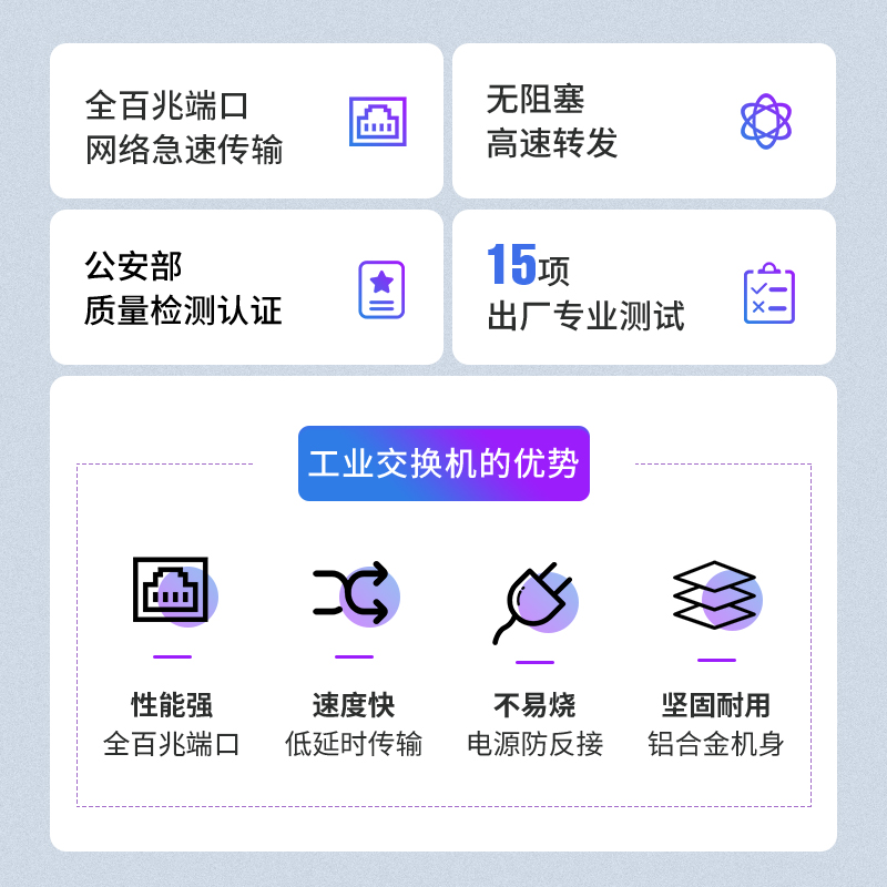 中科光電 工業(yè)級(jí)交換機(jī)5口百兆 安防監(jiān)控?cái)z像頭以太網(wǎng)絡(luò)分流線器12V/24V/48V壁掛導(dǎo)軌式 ZK-7000-10-5FT