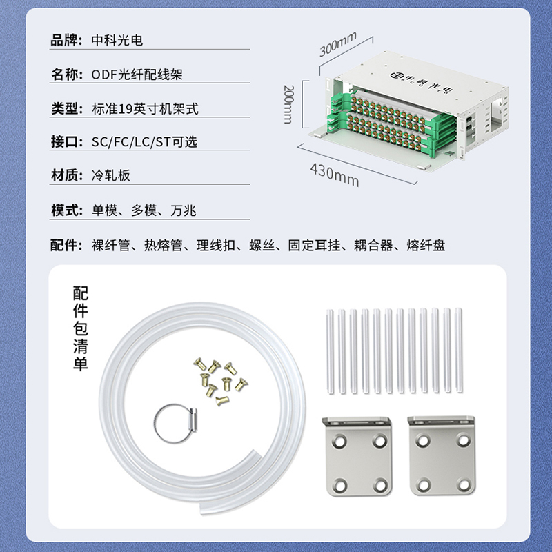 中科光電ZK-ODF-96LC-MM 96芯ODF光纖配線架LC多模滿配箱 19英寸機(jī)架式推拉終端盒子框單元體光纜尾纖熔接盤