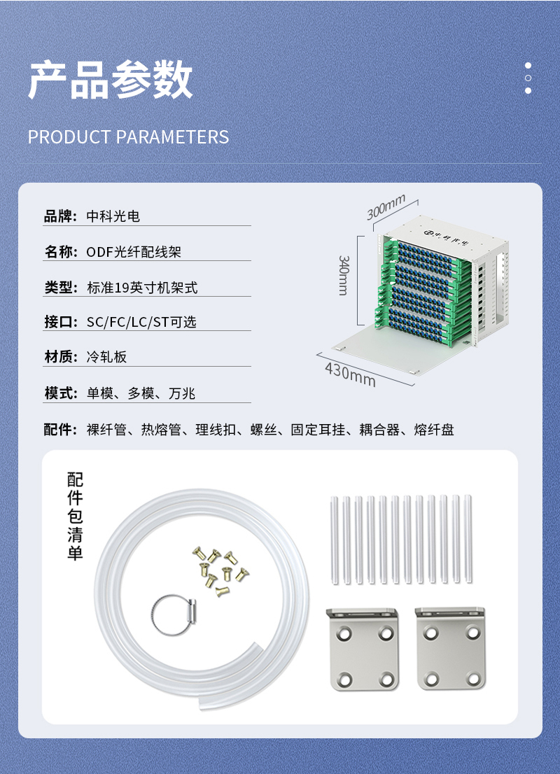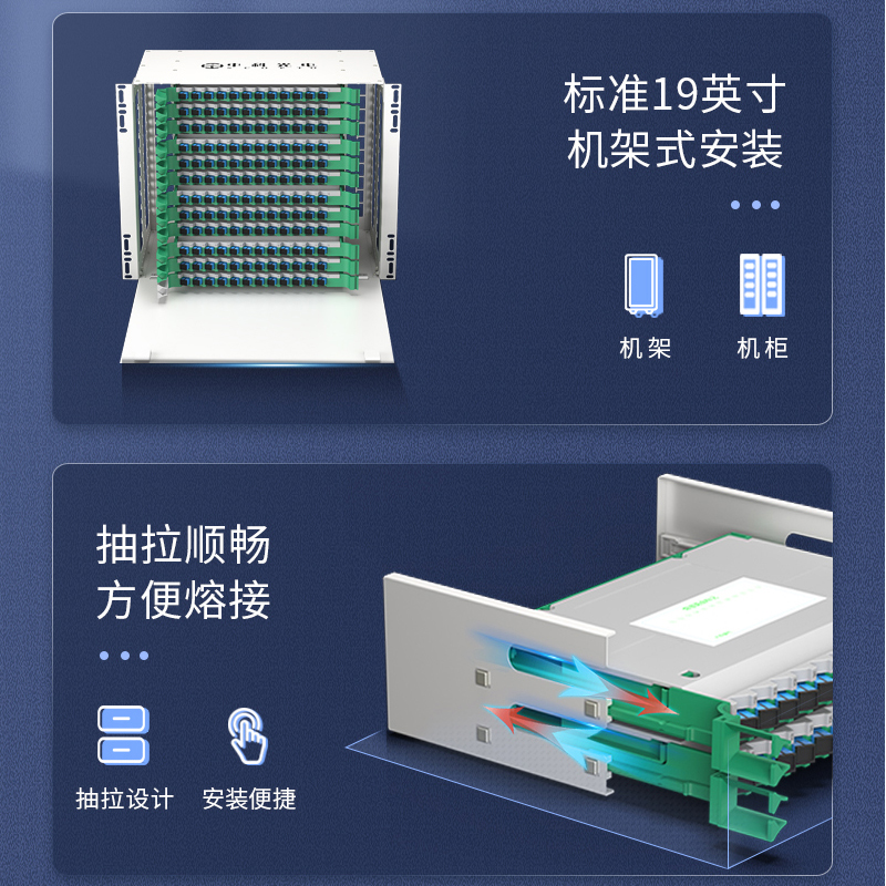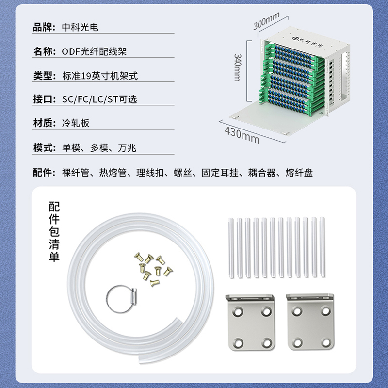 中科光電ZK-ODF-144SC-MM 144芯ODF光纖配線架SC多模滿配箱 19英寸機架式推拉終端盒子框單元體光纜尾纖熔接盤