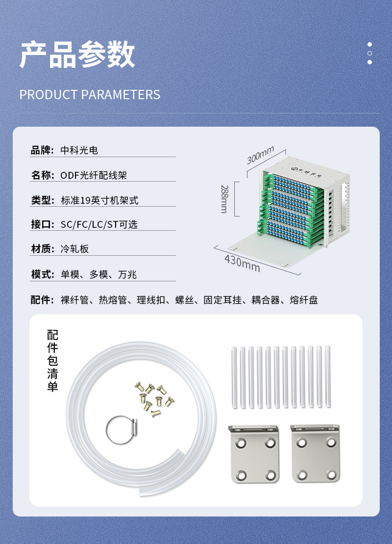 中科光電ZK-ODF-288LC-MM 288芯ODF光纖配線架LC多模滿配箱 19英寸機(jī)架式推拉終端盒子框單元體光纜尾纖熔接盤