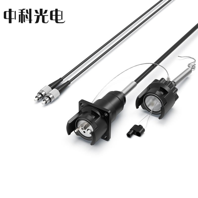 中科光電 室外單模2芯TPU野戰(zhàn)光纜轉(zhuǎn)接線 車壁式塑料航空母頭轉(zhuǎn)FC接頭 防水塑料航空頭-FC 3米 ZK-2S-SHMF3