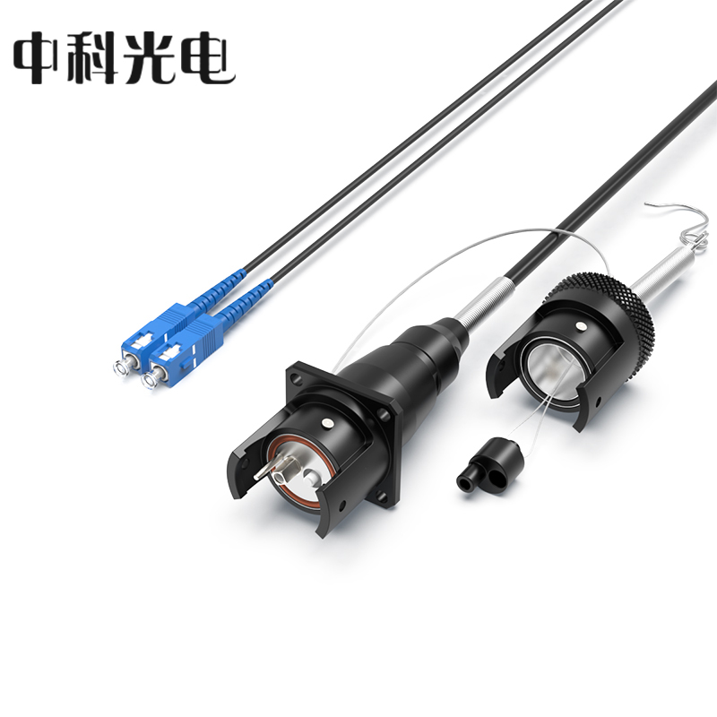 中科光電 室外單模2芯TPU野戰(zhàn)光纜轉(zhuǎn)接線 車壁式金屬航空母頭轉(zhuǎn)SC接頭 防水金屬航空頭-SC 3米 ZK-2S-JHMS3