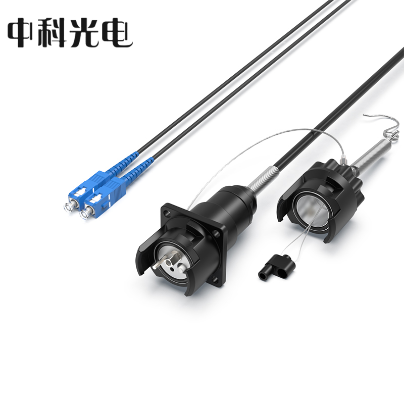 中科光電 室外單模2芯TPU野戰(zhàn)光纜轉(zhuǎn)接線 車壁式塑料航空母頭轉(zhuǎn)SC接頭 防水塑料航空頭-SC 3米 ZK-2S-SHMS3
