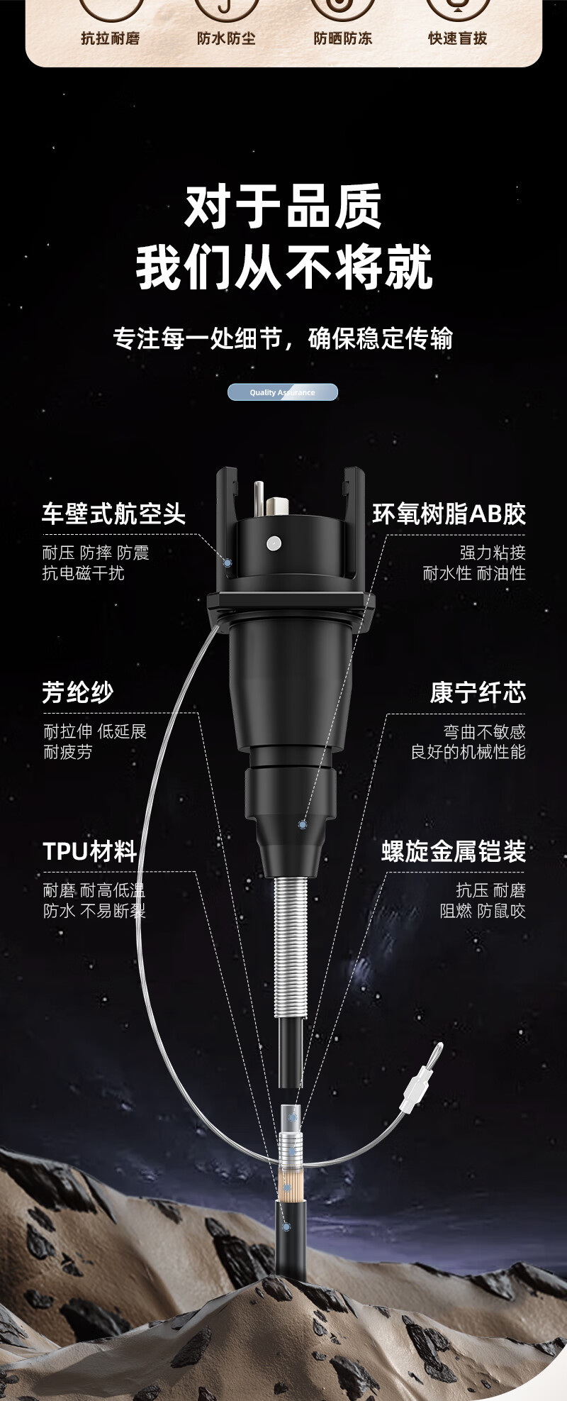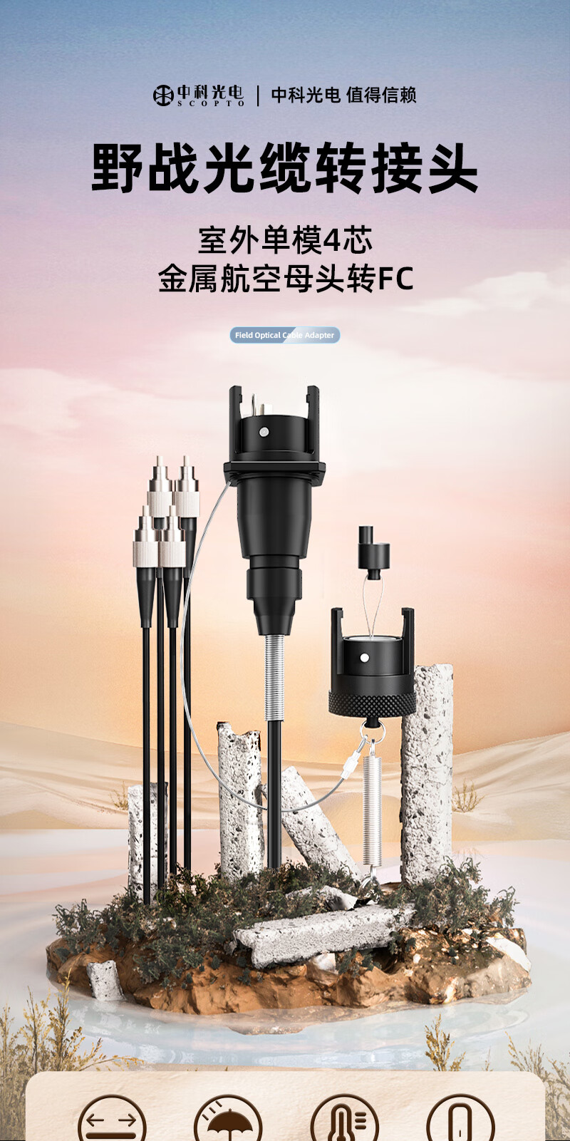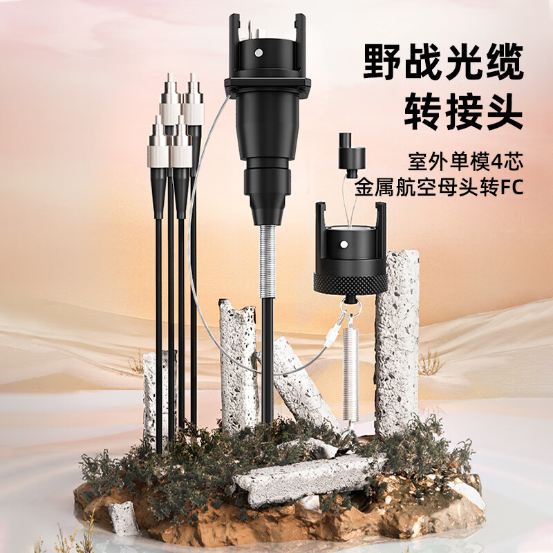 中科光電 室外單模4芯TPU野戰(zhàn)光纜轉(zhuǎn)接線 車壁式金屬航空母頭轉(zhuǎn)FC接頭 防水金屬航空頭-FC 3米 ZK-4S-JHMF3