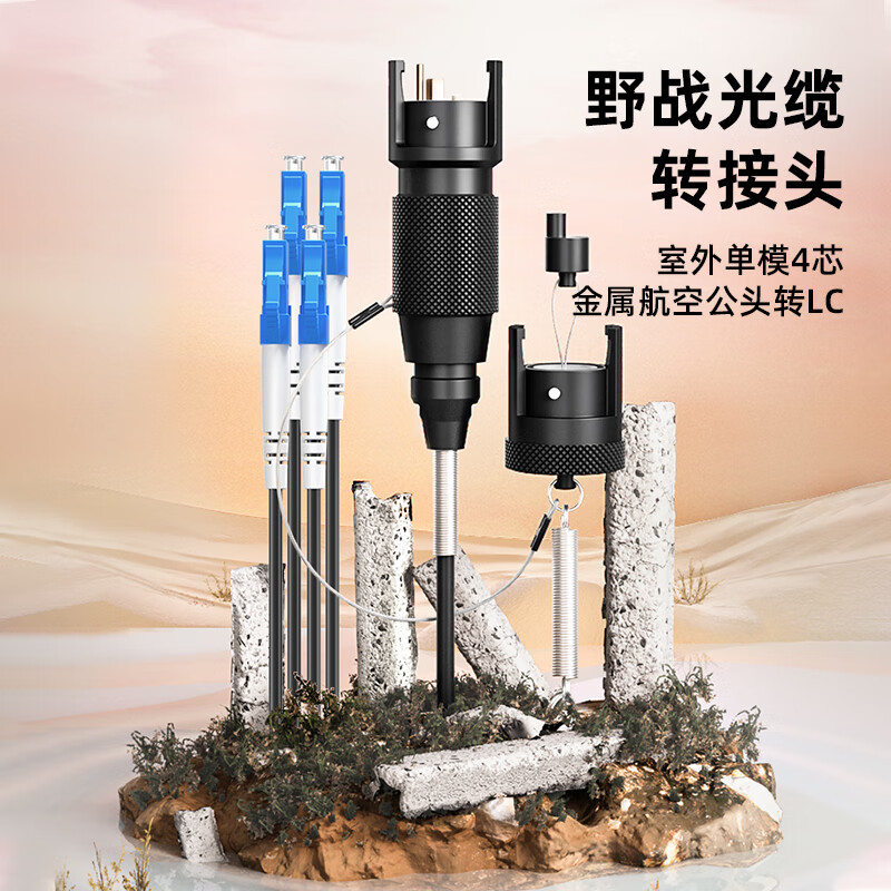中科光電 室外單模4芯野戰(zhàn)光纜轉(zhuǎn)接頭連接器轉(zhuǎn)接線 航空金屬公頭轉(zhuǎn)LC接頭光纖跳線 3米 ZK-4S-JHGL3