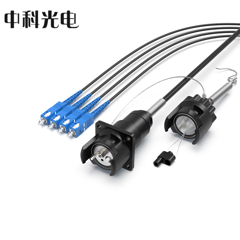 中科光電 室外單模4芯TPU野戰(zhàn)光纜轉(zhuǎn)接線 車壁式塑料航空母頭轉(zhuǎn)SC接頭 防水塑料航空頭-SC 3米 ZK-4S-SHMS3