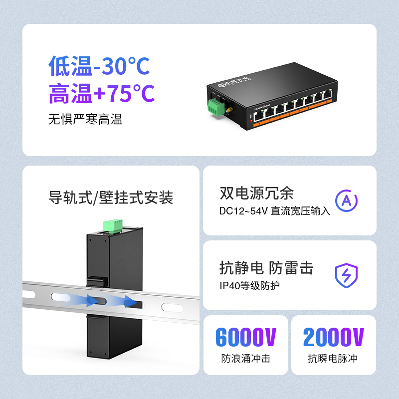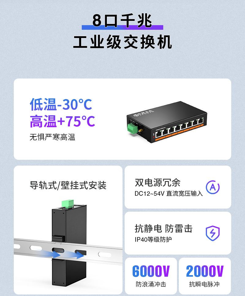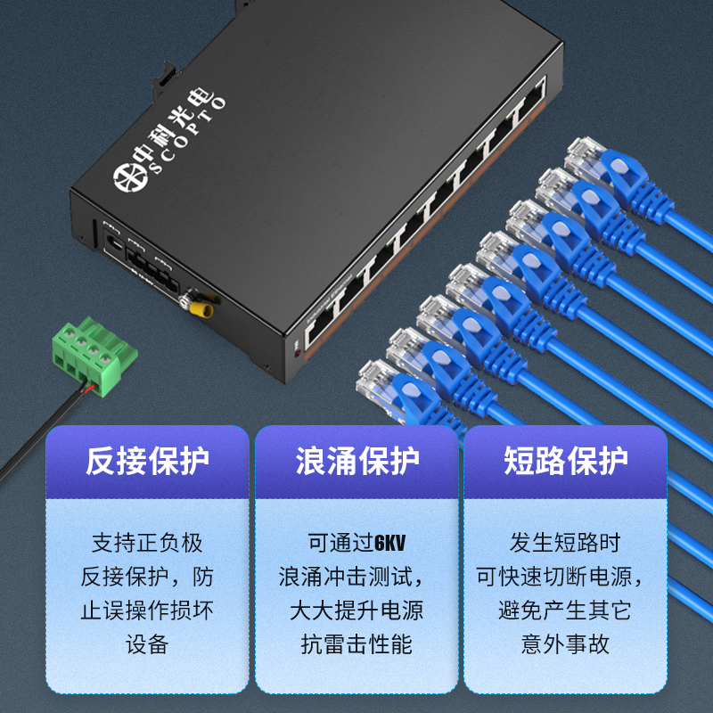 中科光電 8口千兆交換機 工業(yè)級以太網(wǎng)交換機 監(jiān)控網(wǎng)絡(luò)網(wǎng)線分線器分流器 含12V電源 ZK-7000-10-8GT