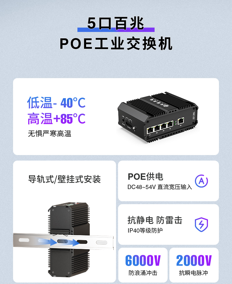 中科光電POE工業(yè)交換機 5口POE交換機百兆 POE交換機5口POE供電 工業(yè)級以太網(wǎng)交換機導(dǎo)軌式 ZK-7500-10-5FP