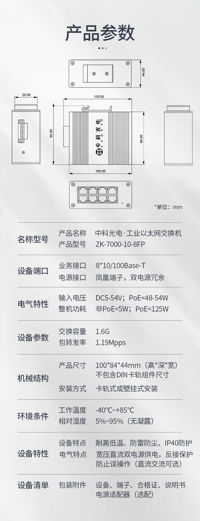 中科光電 POE工業(yè)交換機(jī) 8口POE交換機(jī)百兆 POE交換機(jī)8口 POE供電 工業(yè)級(jí)以太網(wǎng)交換機(jī)導(dǎo)軌式 ZK-7000-10-8FP