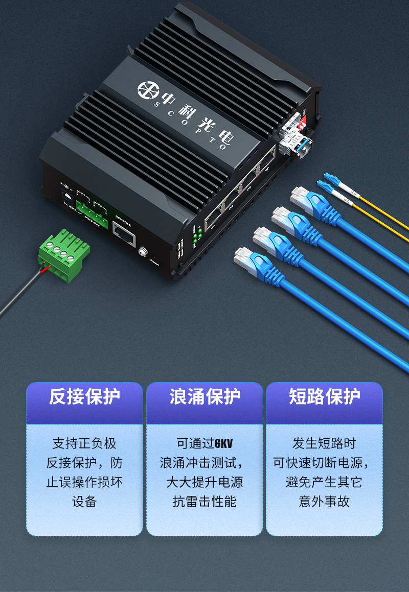 中科光電 工業(yè)級(jí)環(huán)網(wǎng)管理型 工業(yè)以太網(wǎng)交換機(jī) 千兆多模雙纖2光4電轉(zhuǎn)換器收發(fā)器 LC接口 ZK-7500-23-2GX4GT-550M