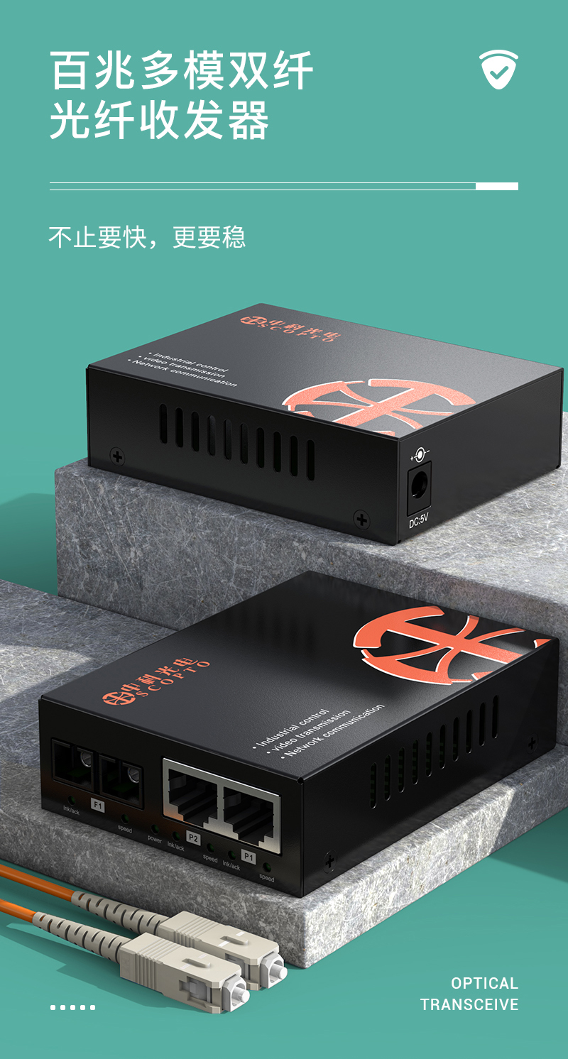 中科光電 光纖收發(fā)器 百兆多模雙纖 光電轉(zhuǎn)換器 1光2電 默認(rèn)SC接口 可定制FC/LC/ST口 2KM可選