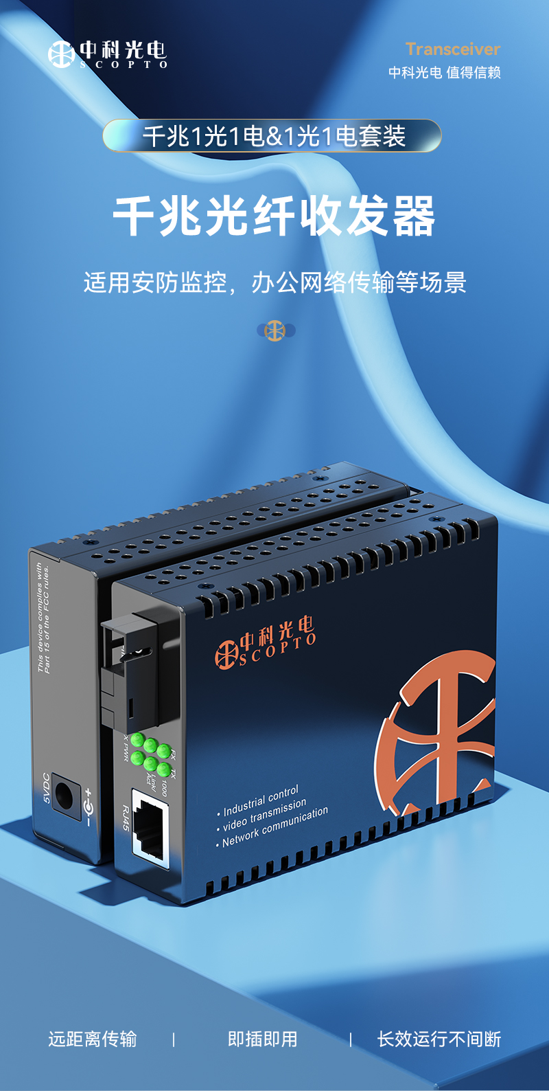 中科光電 千兆單模單纖光纖收發(fā)器 光電轉(zhuǎn)換器 外置電源 SC接口 10-120公里可選 一臺(tái)