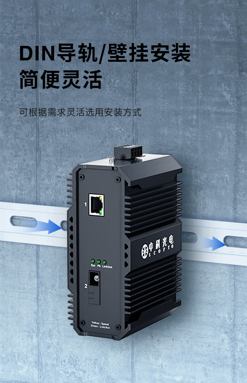 中科光電 工業(yè)級光纖收發(fā)器 百兆單模單纖1光1電轉(zhuǎn)換器以太網(wǎng)交換機24V48V導(dǎo)軌式SC接口