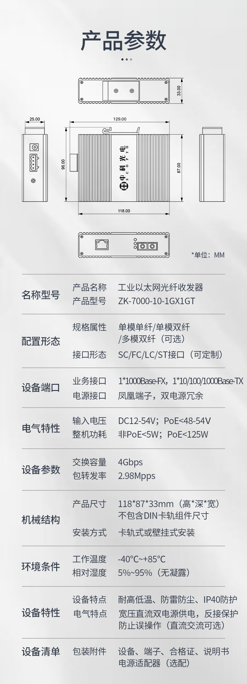 中科光電工業(yè)級(jí)光纖收發(fā)器千兆單模單纖1光1電導(dǎo)軌式光電轉(zhuǎn)換器12V以太網(wǎng)交換機(jī)