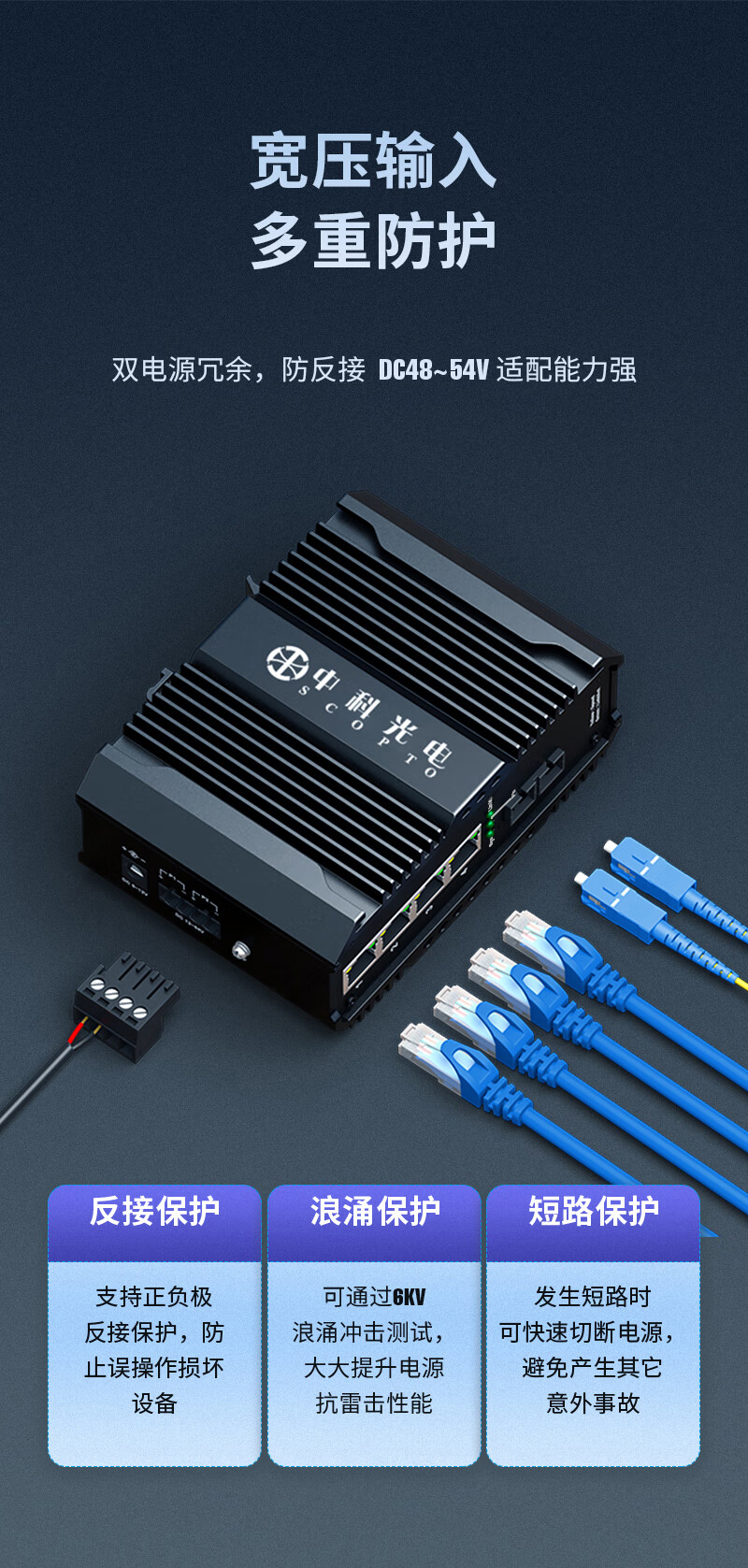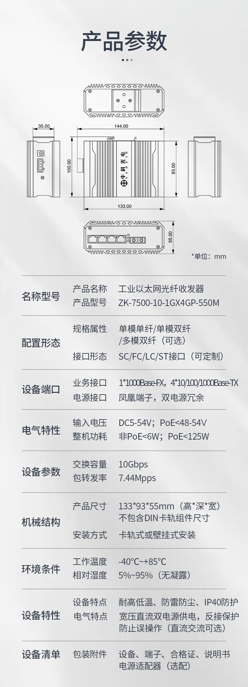 中科光電 POE工業(yè)級(jí)光纖收發(fā)器 千兆多模雙纖1光4電轉(zhuǎn)換器以太網(wǎng)交換機(jī)48V導(dǎo)軌式 SC接口