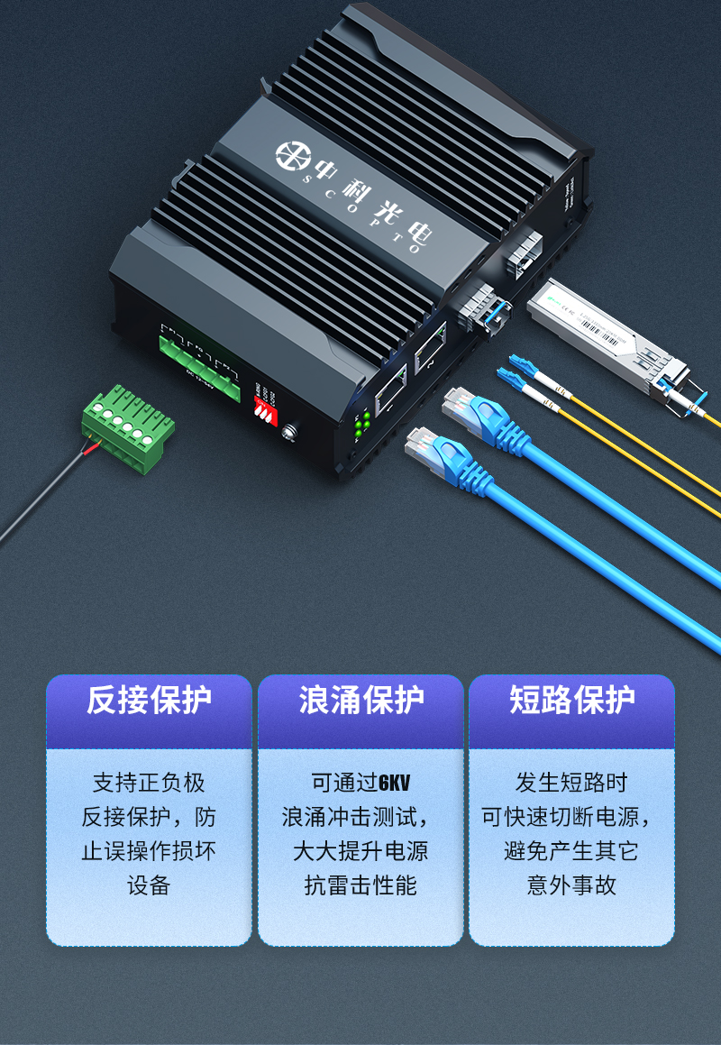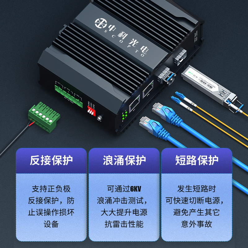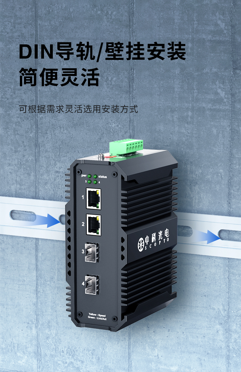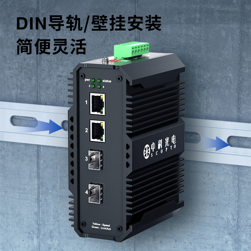 中科光電 工業(yè)級(jí)以太網(wǎng)光纖交換機(jī) 千兆2光2電口 光電轉(zhuǎn)換器12V導(dǎo)軌式1.25G光纖收發(fā)器