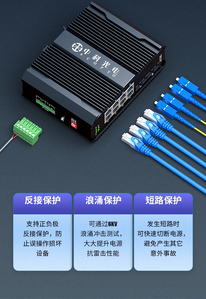 中科光電 工業(yè)級光纖收發(fā)器 千兆多模雙纖2光8電轉(zhuǎn)換器以太網(wǎng)交換機(jī)24V48V導(dǎo)軌式SC接口