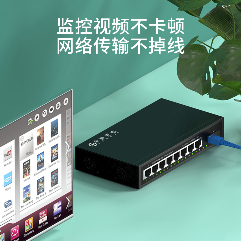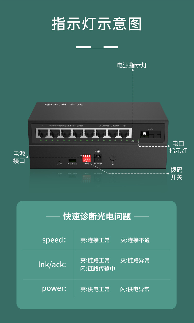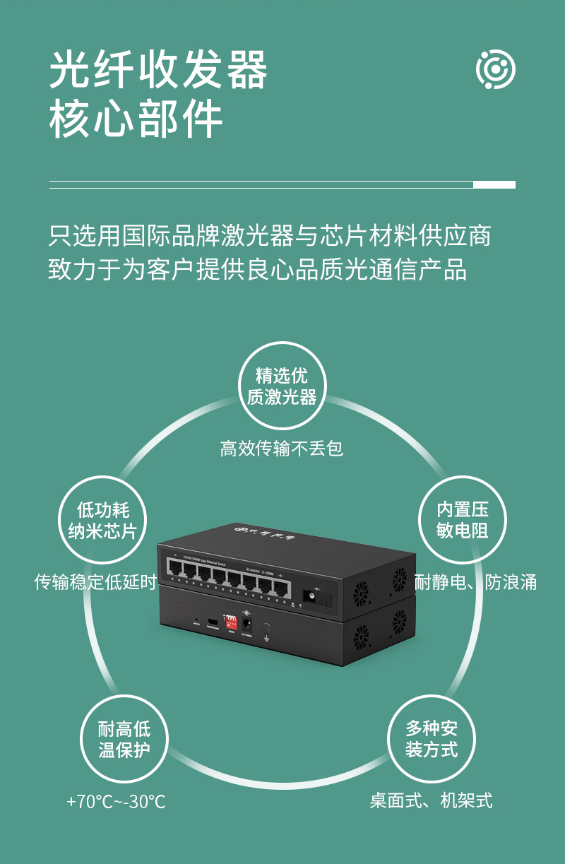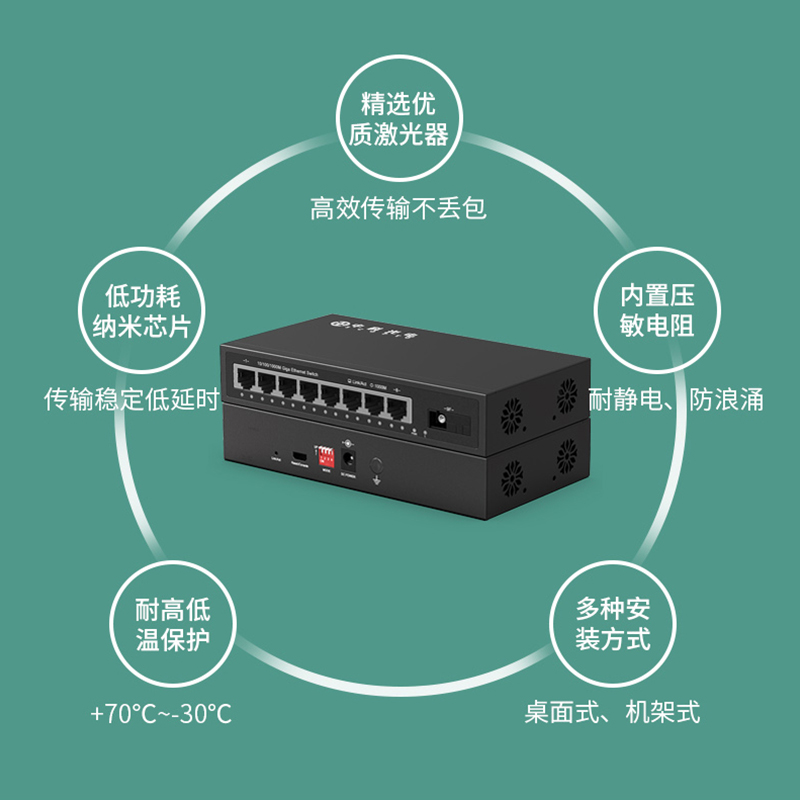 中科光電 千兆1光8電單模單纖光纖收發(fā)器 光電轉(zhuǎn)換器 網(wǎng)絡(luò)端口VLAN隔離型SC接口 20~120KM可選