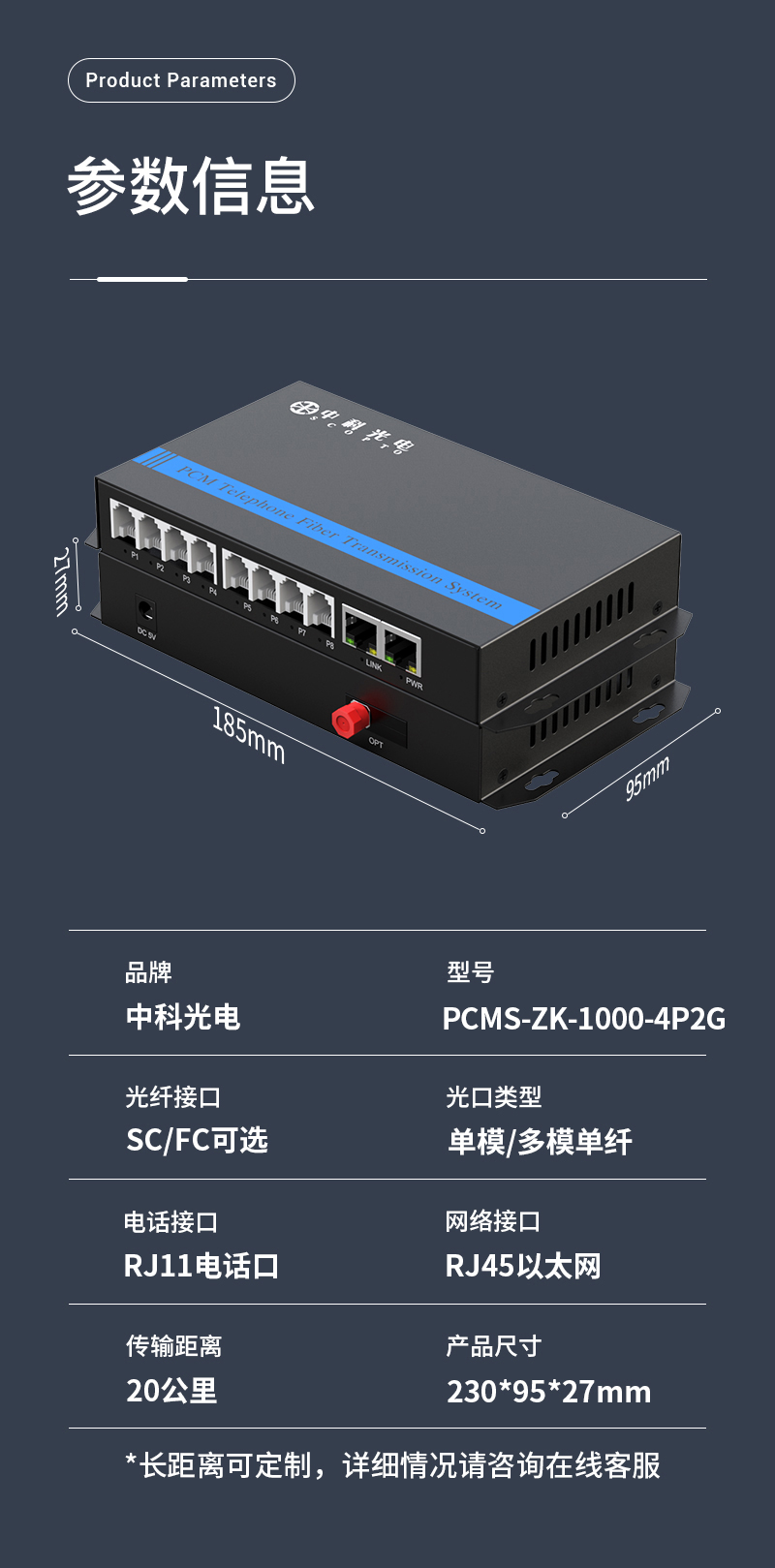 中科光電 電話光端機4路電話+2路千兆網(wǎng)絡(luò) 以太網(wǎng)光纖收發(fā)器 光纖傳輸 FC接口 PCMS-ZK-1000-4P2G