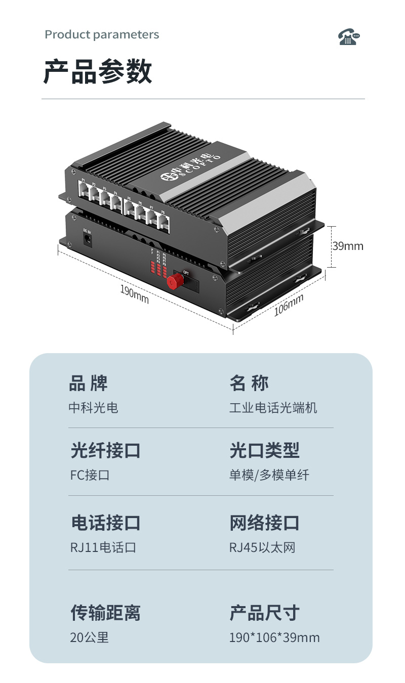 中科光電 電話光端機(jī)8路 電話光纖收發(fā)器 PCM語音電話轉(zhuǎn)光纖延長器轉(zhuǎn)換器 FC接口 PCMS-ZK-1000-8P