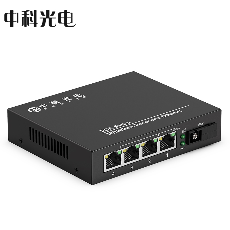 中科光電ZK-FE/104-25B/POE光纖收發(fā)器 百兆1光4電單模單纖 監(jiān)控網(wǎng)絡(luò)光電轉(zhuǎn)換器 SC接口 25公里一臺
