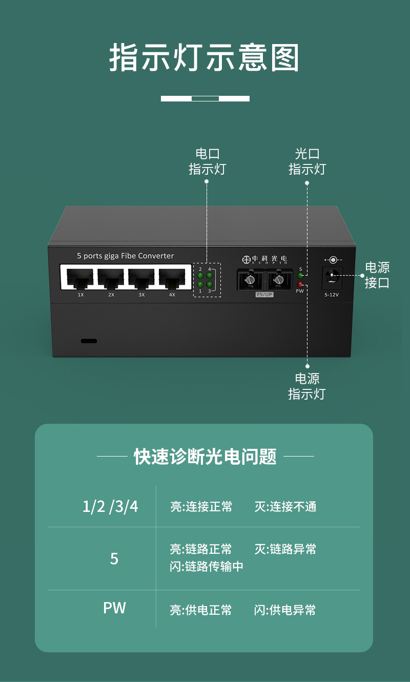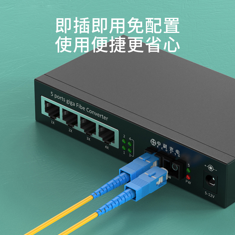 中科光電 光纖收發(fā)器 千兆單模雙纖 光電轉(zhuǎn)換器 1光4電 默認(rèn)SC接口 可定制FC/LC/ST口 10-120公里可選