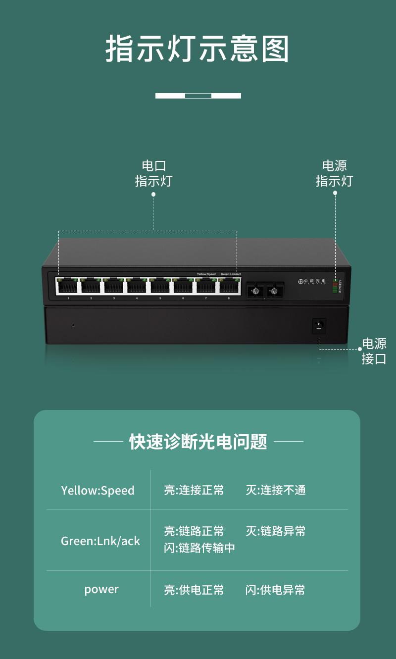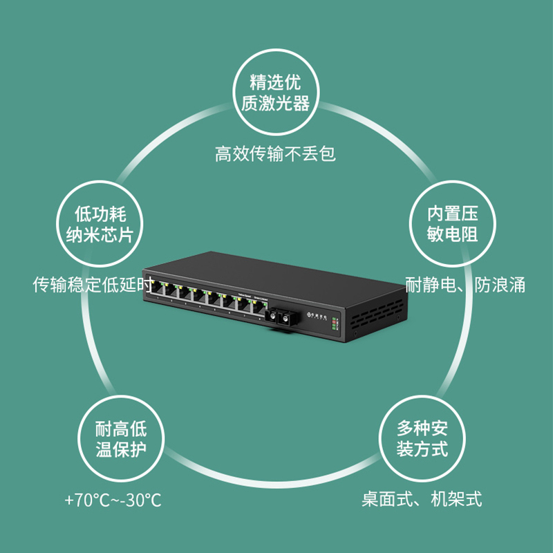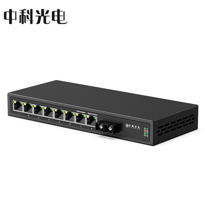中科光電 光纖收發(fā)器 百兆單模雙纖 光電轉(zhuǎn)換器 1光8電 默認(rèn)SC接口 可定制FC/LC/ST口 10-120KM可選