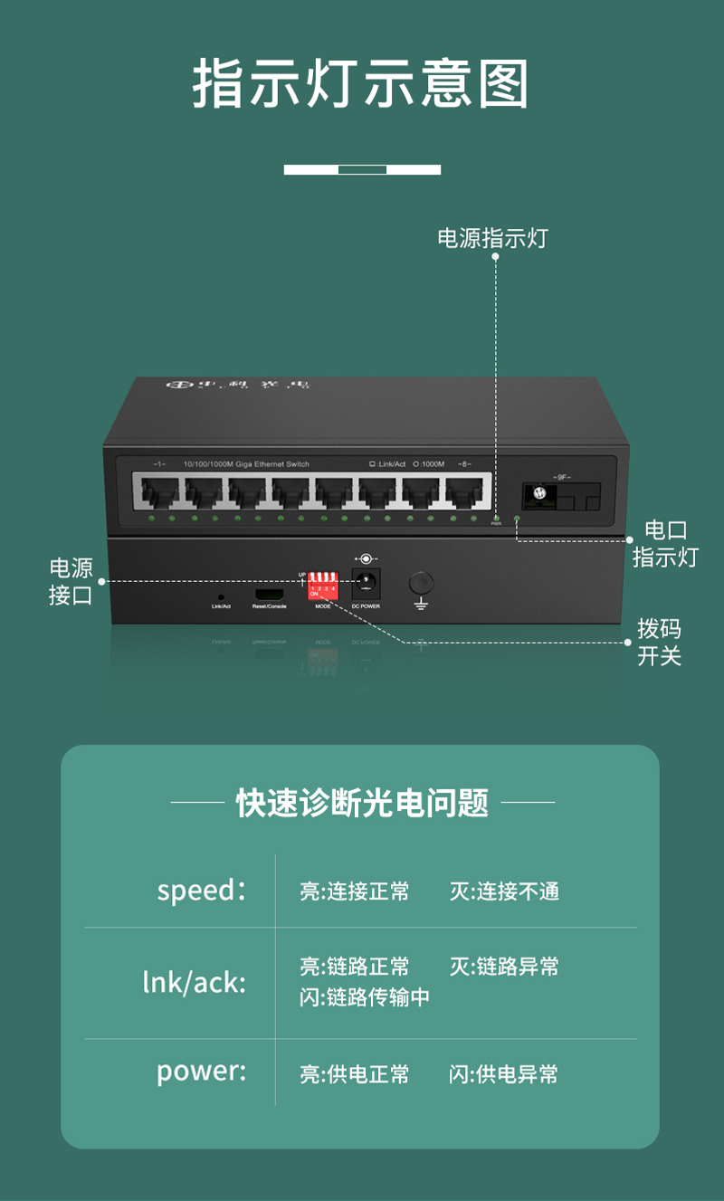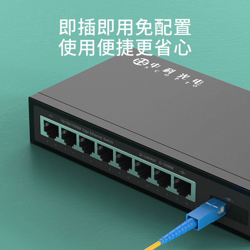 中科光電ZK-GE/108-20B 電信級 千兆1光8電 單模單纖光纖收發(fā)器光電轉(zhuǎn)換器 SC接口 20公里一臺