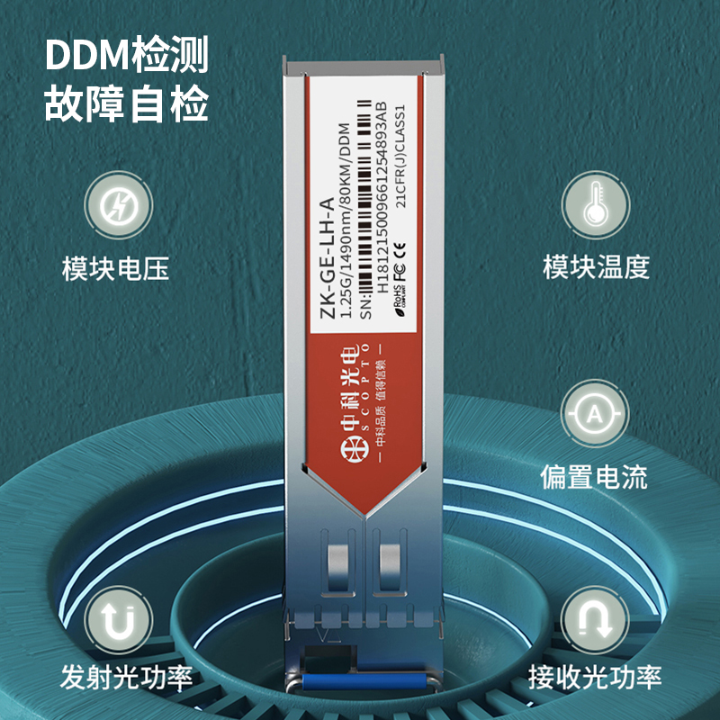 中科光電 千兆光模塊 SFP光模塊 1.25G單模光模塊 單模單纖 1490nm,80KM,LC接口一只A端ZK-GE-LH-A