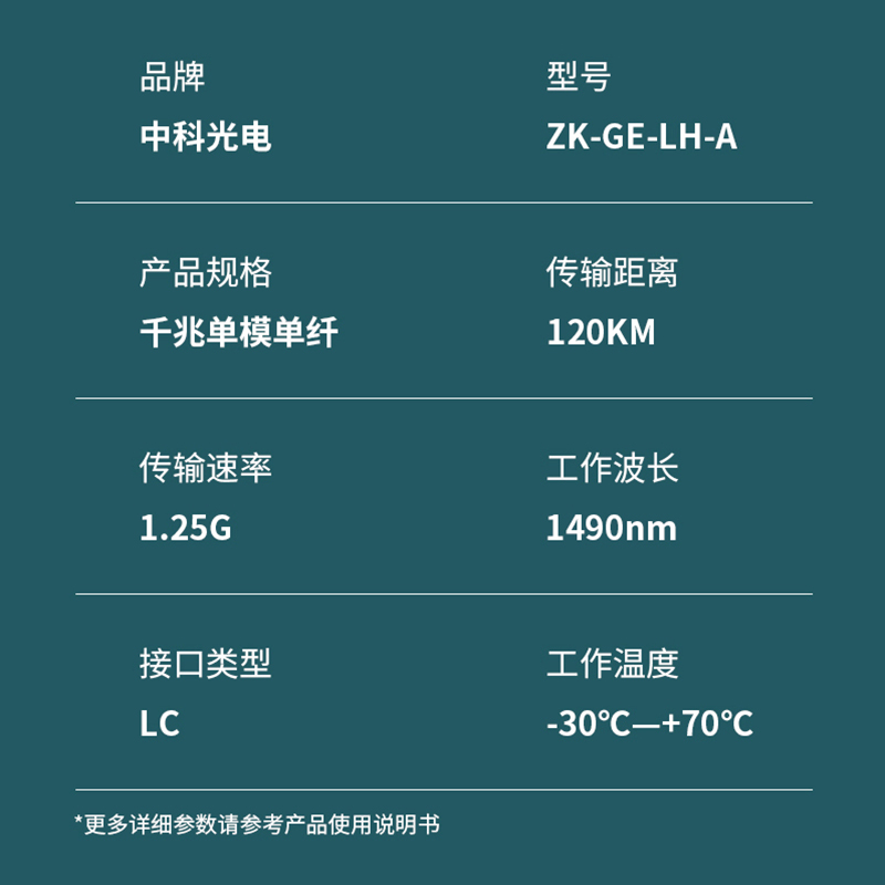 中科光電 千兆光模塊 SFP光模塊 1.25G單模光模塊 單模單纖 1490nm,120KM,LC接口一只A端ZK-GE-LH-A