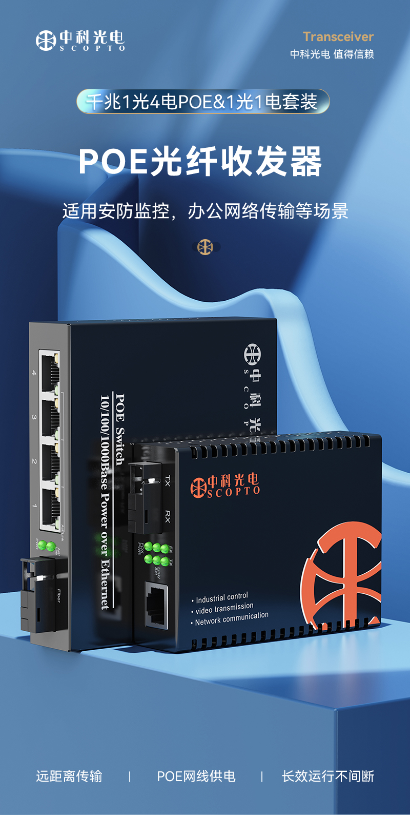 中科光電 POE光纖收發(fā)器 千兆單模單纖 1光4電+1光1電 光電轉(zhuǎn)換器 網(wǎng)絡(luò)光端機(jī)ZK-GE/104P-10A ZK-GE-10B一對