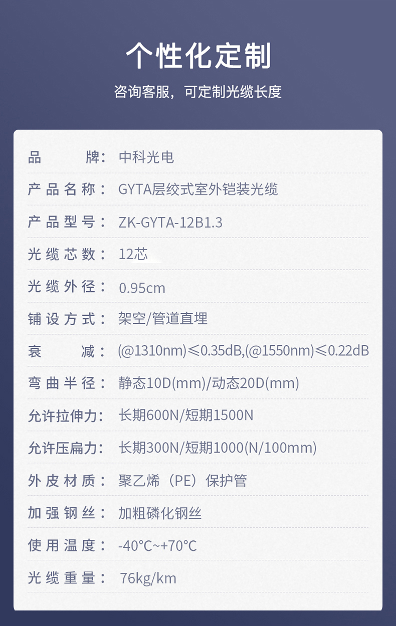 中科光電  鎧裝12芯單模室外光纜  GYTA層絞式室外架空/管道光纖線  可定制長度