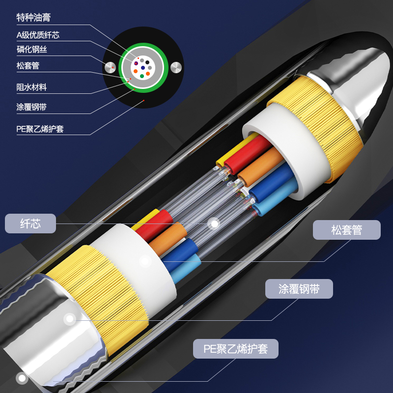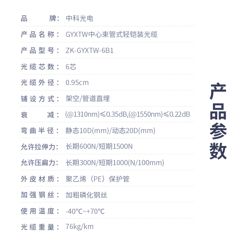中科光電  鎧裝6芯單模室外光纖線 GYXTW中心管式室外網(wǎng)線架空光纜  可定制長(zhǎng)度