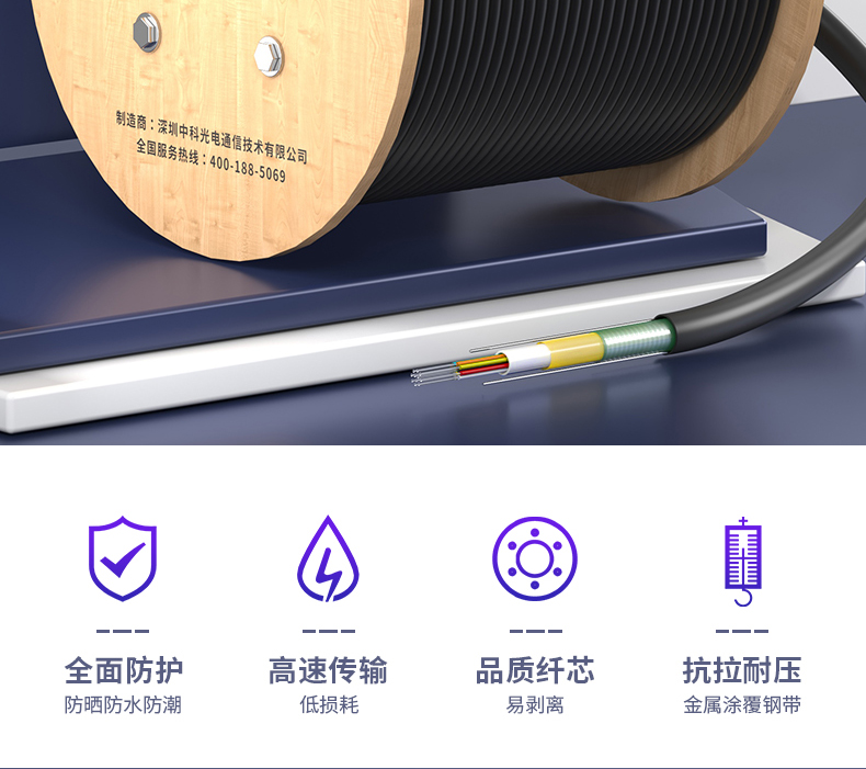 中科光電 鎧裝12芯多模室外光纜OM1(62.5/125)GYXTW中心管式室外架空光纜光纖線  可定制長度