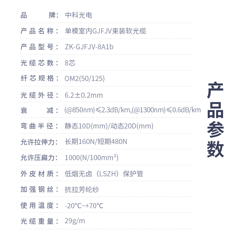 中科光電  8芯多模室內(nèi)網(wǎng)線光纖線 62.5/125 GJFJV束狀軟光纜  可定制長度