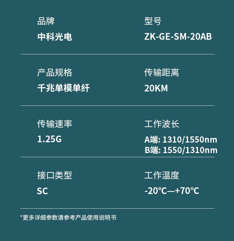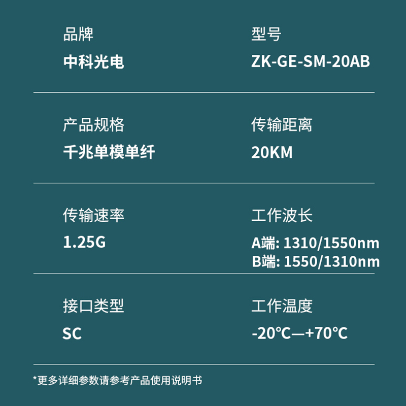 中科光電 千兆光模塊 SFP光模塊 1.25G單模光模塊 單模單纖 1310nm/1550nm,20KM,SC接口一對(duì)ZK-GE-SM-20AB