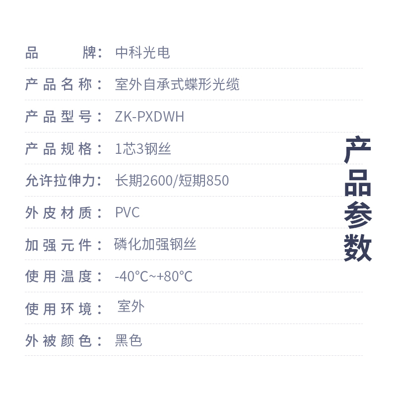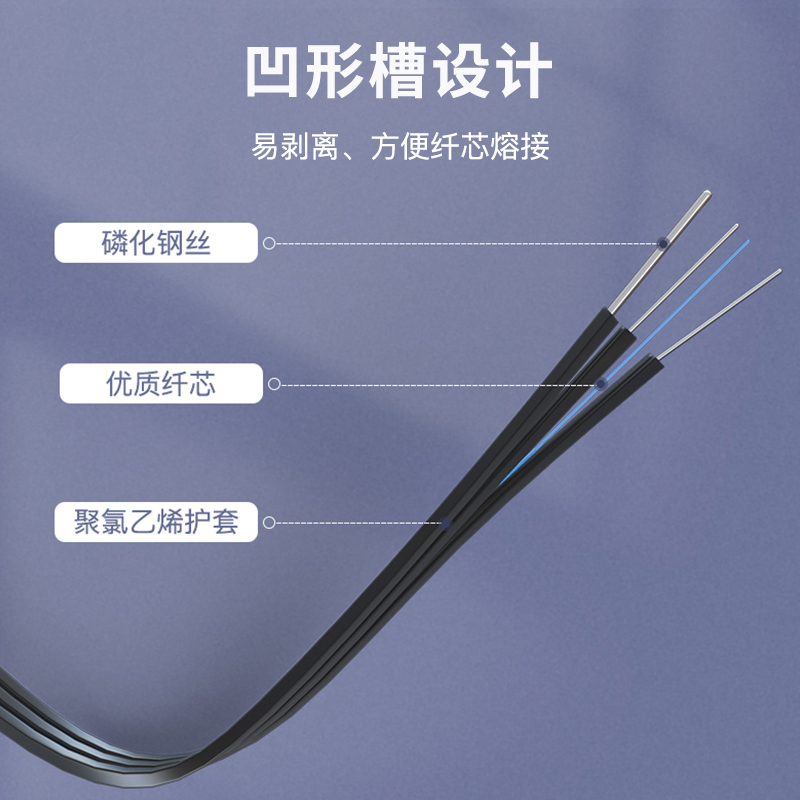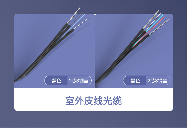 中科光電  蝶形皮線光纖光纜 室外自承式5.0單芯 1芯3鋼絲 低煙無鹵入戶光纖線黑色  長度可定制