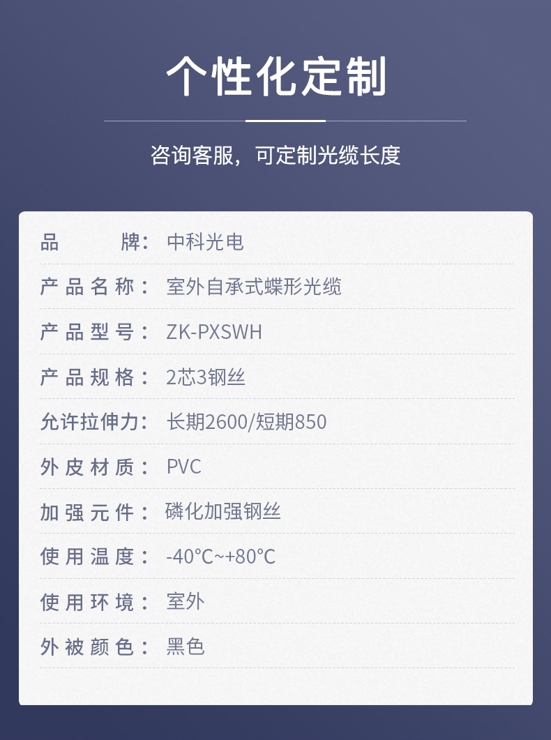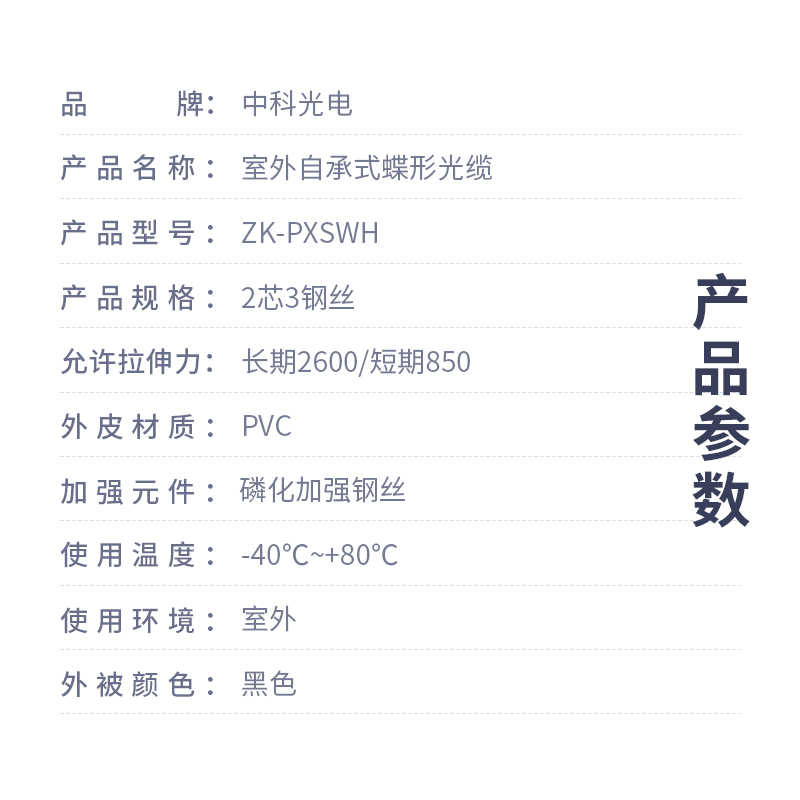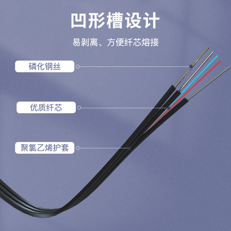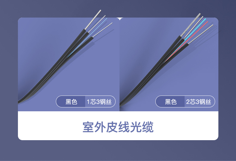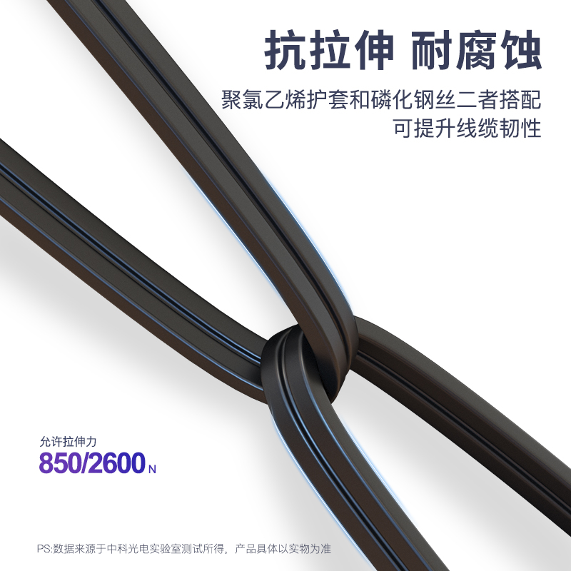 中科光電 蝶形皮線光纖光纜 室外5.0單模雙芯 2芯3鋼絲 低煙無鹵入戶光纖線  黑色 長度可定制